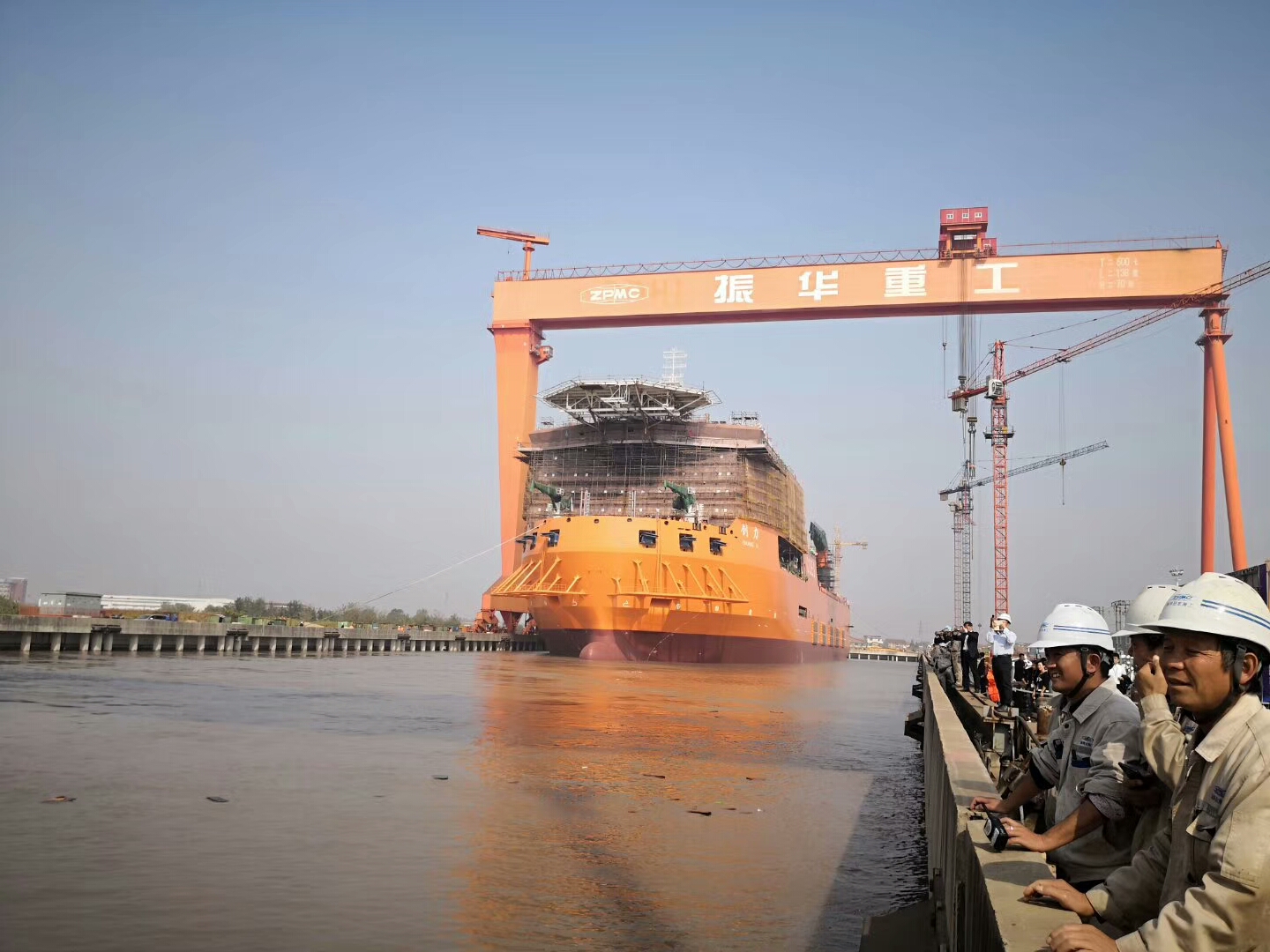 上海振華重工承建4500T起重搶險打撈船順利下水
